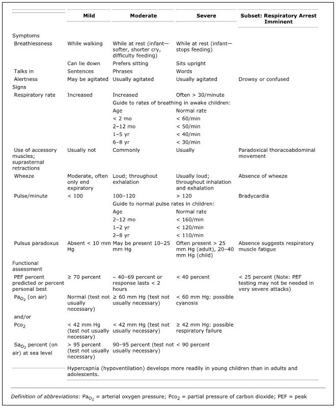 Figure 1. Acute asthma severity: clinical signs and symptoms. Originally published as Figure 5-3 in the Expert Panel Report 3.